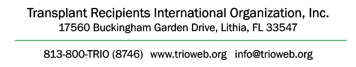 All of us at TRIO are excited to be back in contact with you after an exciting summer filled with the International Transplant Congress in San Francisco, the World Transplant Games in Dresden, Germany, and a move to our new email provider, Constant Contact! We hope that your summer was a relaxing and rewarding one and that you join us in looking forward to a busy fall!