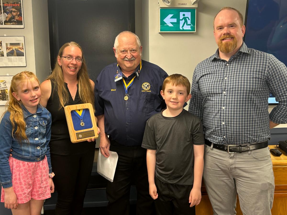 Le Prix Mel Osborne du leader communautaire de la Fondation Kiwanis du Canada a été remis à Katy Thompson par le Club Kiwanis de Forest lors de son assemblée générale du 12 mai.