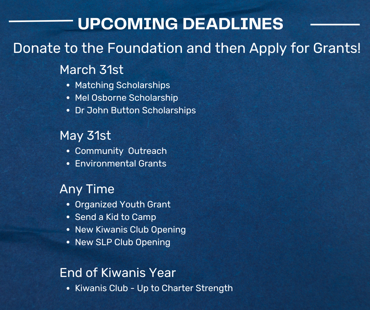 As a friendly reminder, you can support the Kiwanis Foundation of Canada and make a meaningful impact in our communities by donating online through our Canada Helps link. Donating via Canada Helps is not only convenient, but also an excellent way to ensure you meet the year-end CRA deadline for charitable contributions. Every donation is eligible for an official tax receipt, making it easier than ever to support our mission and receive recognition for your generosity. Thank you for your ongoing support!
