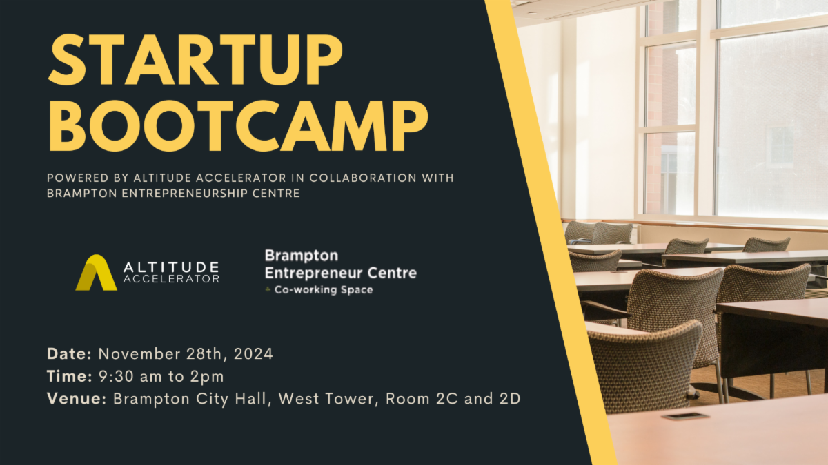 Join us for an engaging Startup Bootcamp, hosted by Altitude Accelerator in collaboration with Brampton Entrepreneurship Centre. This event is designed to equip early stage companies with essential knowledge and tools to drive their ventures forward.