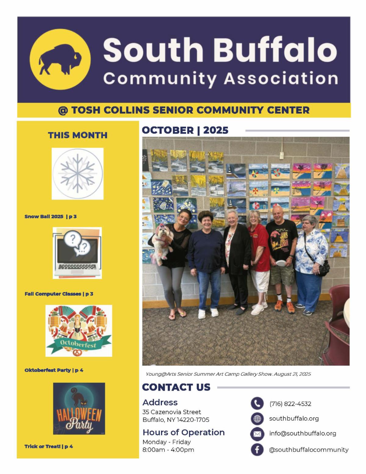 The South Buffalo Community Association is pleased to offer memberships to the Tosh Collins Senior Center. Benefits for 2025 include: