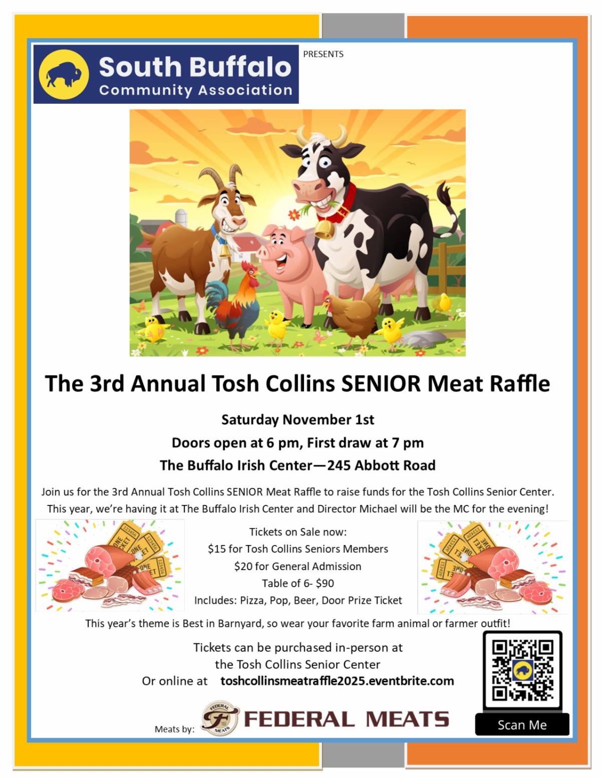 - Saturday, November 1st- 3rd Annual Tosh Collins SENIOR Meat Raffle- 6 pm - 10 pm