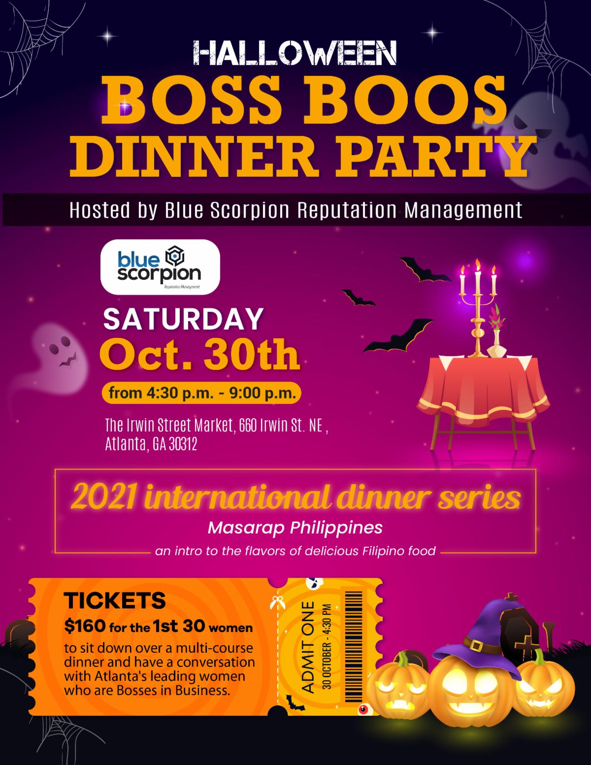 Ladies, join us for our annual networking event and have a ghoulishly good time. BSRM is inviting women who are interested in starting a business to network with women already in business. We will have a multi-course Filipino dinner and a pre-event discussion with a financial advisor who will talk about what it takes to be financially ready to open a business. Share with women you know who are considering becoming an entrepreneur and RSVP below.