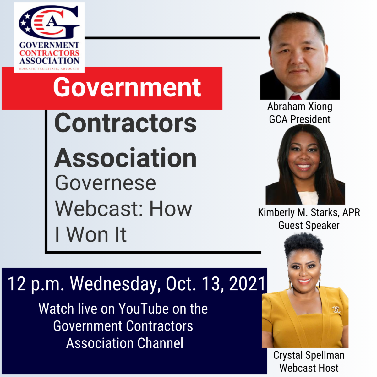 Add the Government Contractors Association to your calendar! Watch at noon on Wednesday for the Association's new "Governese Webcast." BSRM Principal Consultant Kimberly M. Starks, APR, will be the guest speaker for the 30-minute "How I Won It" portion of the webcast with host Crystal Spellman. BSRM is a federal government contractor for the U.S. Department of Agriculture and a member of the GCA since 2018.