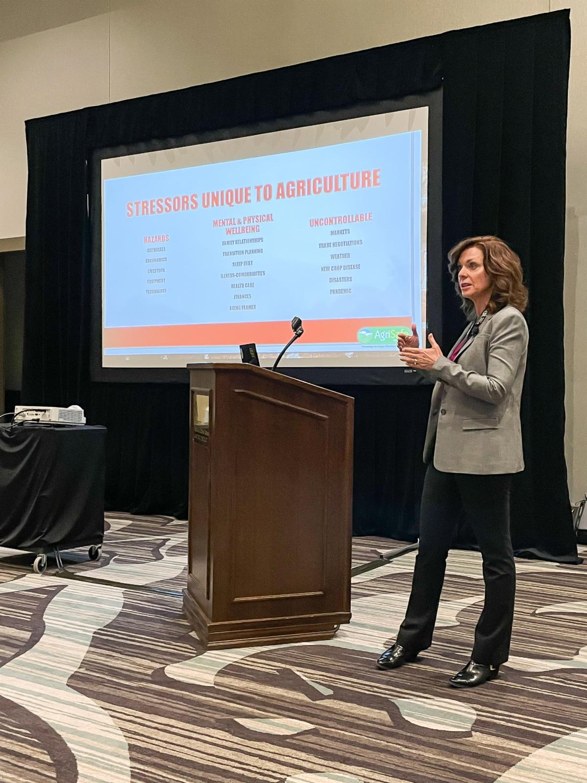 Recently, Dr. Tina Chasek (LIMHP, LADC, Associate Professor at the University of Nebraska Omaha) and Linda Emanuel (RN, Community Health Director at AgriSafe Network) presented to 100 young producers and spouses at Central Valley Ag's annual Young Producers Conference in Omaha, Nebraska. Their interactive session was on "Seasons Change, You Remain - Talking About Stress," where they shared specific stress identification related to agriculture as well as management strategies.