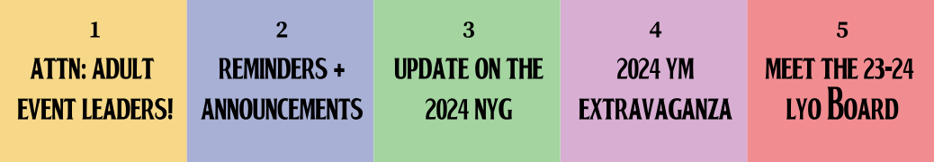 This is our new bi-weekly (that’s every other week) newsletter from the Office of Youth and Young Adult Ministries of your own Virginia Synod ELCA. In each issue we’ll have five items - one for each of the five petals of the Luther Rose: announcements, reminders, tips, celebrations, Q&A, and whatever else we can think of every time. Thanks to the very many (okay, we didn't really count, but it seemed like a lot) people who sent positive reviews on our first issue!