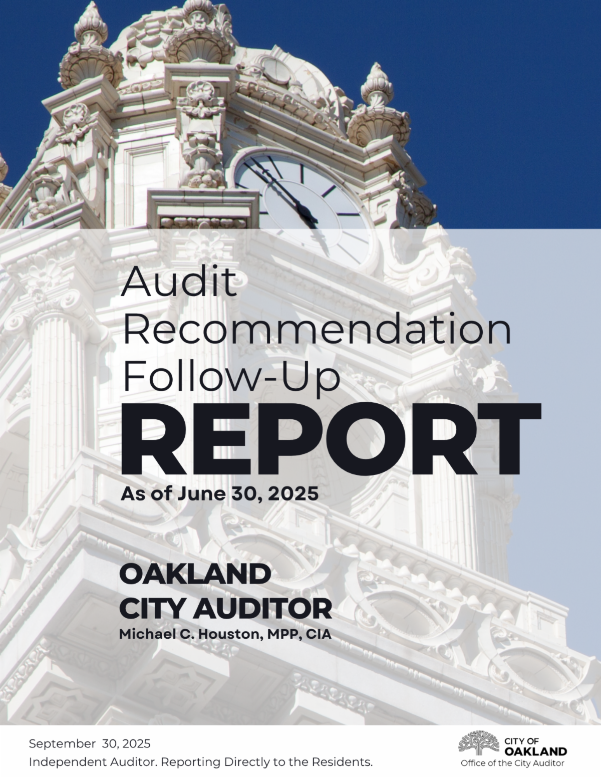 #LookAtOakland! The Office of the City Auditor is thrilled to announce the release of our Semiannual Audit Recommendation Follow-Up (ARFU) Report covering all outstanding audit recommendations as of June 30, 2025. This report shows the City's commitment to implementing our audit recommendations.