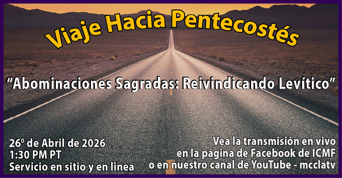 ¡Sé que disfrutaste del mensaje del reverendo Eric Buter el domingo pasado! También sé que debes estar disfrutando de esta serie de sermones, Camino Hacia La Pentecostés, que nos llevará hasta el Domingo de Pentecostés. Este domingo, Raúl Radilla continuará la serie de sermones basada en una "ley" en el libro de Levítico. Agárrate a tus sombrero... ¡va a ser genial!