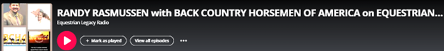 Back Country Horsemen of America's Randy Rasmussen! We’ll discuss events of the past year and a New Proposal by the Trump Administration to change a 20 year regulation that will affect Trail Users across the country.
