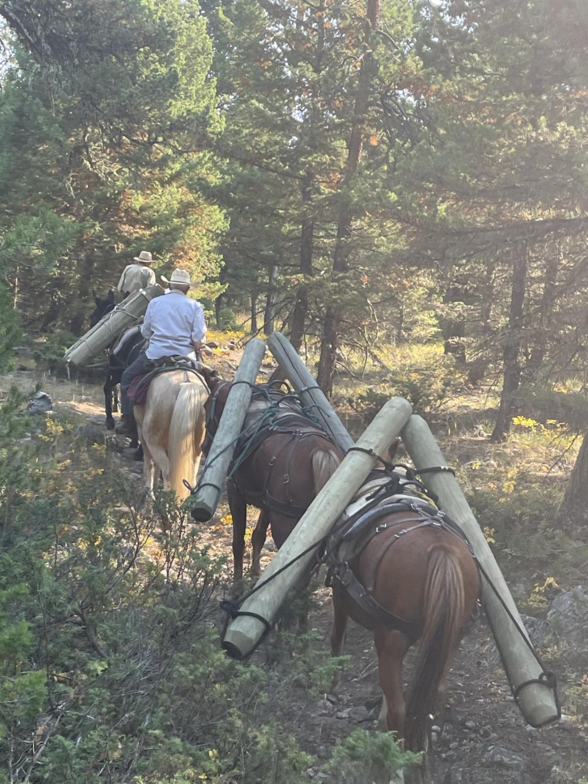 The Gallatin Valley Chapter of BCHMT has been fielding Wednesday and Saturday trail crews for many years to maintain trails in the Spanish Peaks Wilderness as well as adjacent national forests. There is always more work to be done, either clearing deadfall or maintaining tread so when the riding season ends for the most part in October/November we are already looking forward to next year. In 2024 our chapter purchased 20 "nominal ten foot by 8" treated logs to use for water dams in areas that were becoming gullied out and where native material was not readily available.