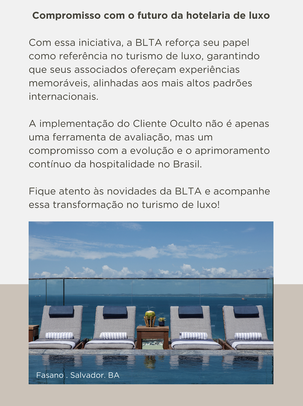 Brazilian Luxury Travel Association | Av. Brigadeiro Faria Lima 2369, cj 1102 | São Paulo, BRASIL 01452-000 BR