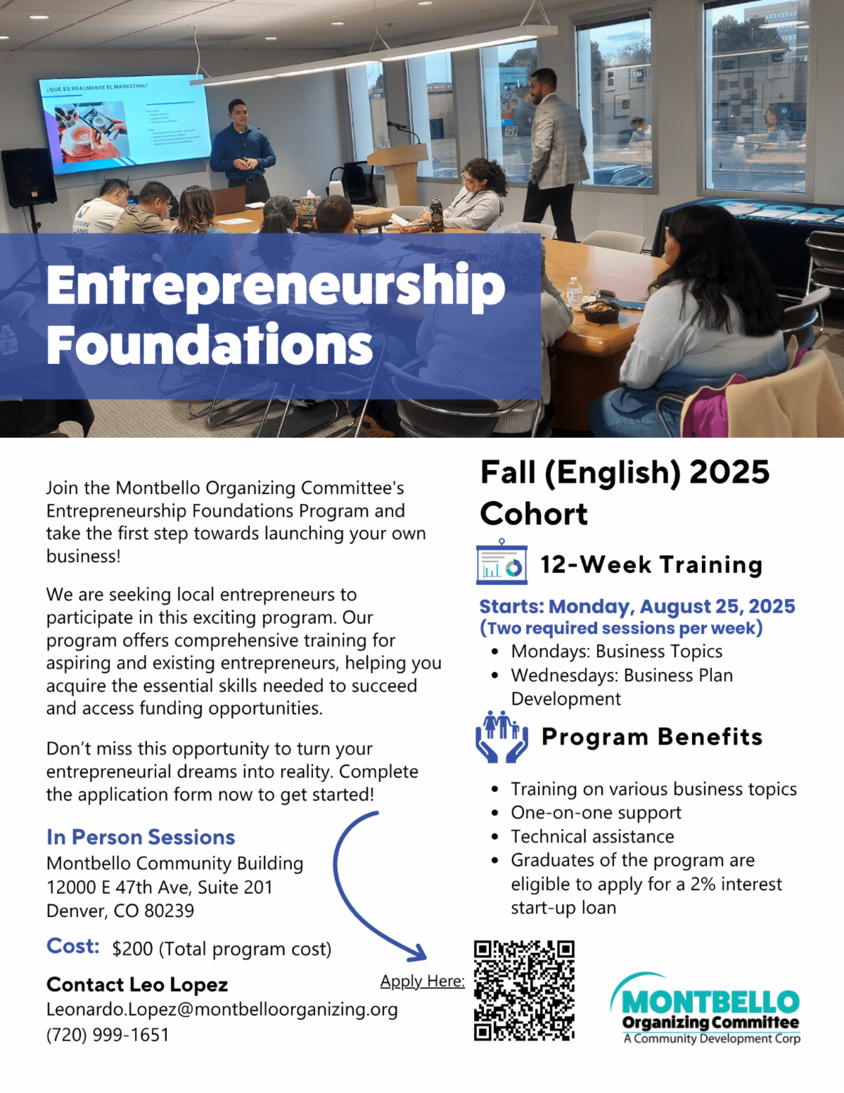 Beginning in late August, the Montbello Organizing Committee will kick off leadership training sessions in the newly opened Nonprofit Leadership Center (NLC). The first sessions will focus on grant writing. Grant Writing 101 will be held from 9 am – 5 pm on Friday, August 29th and Grant Writing 201 will take place from 9 am – Noon on Saturday, August 30th. Upcoming sessions will cover topics such as fundraising, sustainability, policy, and staff/board management. Workshops will range from enhancing board recruitment to mastering data analytics, digital marketing, and cybersecurity. Each session lasts 1-2 days and costs $100 per session; a series of four sessions is just $375.