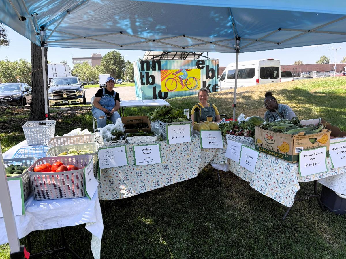 On July 26th, Children’s Farms in Action (CFA) hosted a low-cost farm stand at the Montbello Community Building, offering fresh produce grown with organic practices in nearby school gardens at Academy 360 and Monarch Montessori. Just a block from the stand, students and youth community members helped cultivate a rich harvest of cilantro, basil, thyme, corn, peaches, Mexican squash, cucumbers, tomatoes, watermelon, radishes, cantaloupe, lettuce, collard greens, chiles, and onions. The event supported local food access and youth leadership in our neighborhood’s food system.