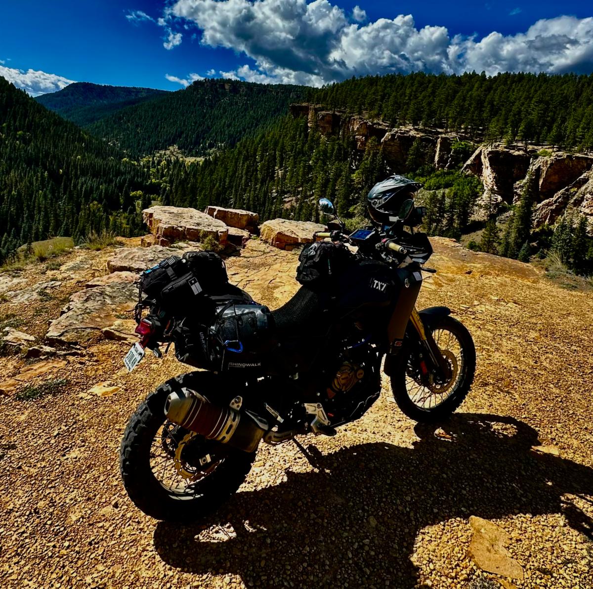 I traveled 2,500 miles during my four night solo motorcycle run through Texas, New Mexico, Southwest Colorado and all points between. This trip always provides extreme weather conditions, solitude, beautiful scenery, a connection between man and bike and feeds my soul. I rode 5 days averaging ten hours per day; I love to ride. And C.J. had some peace and quiet also!