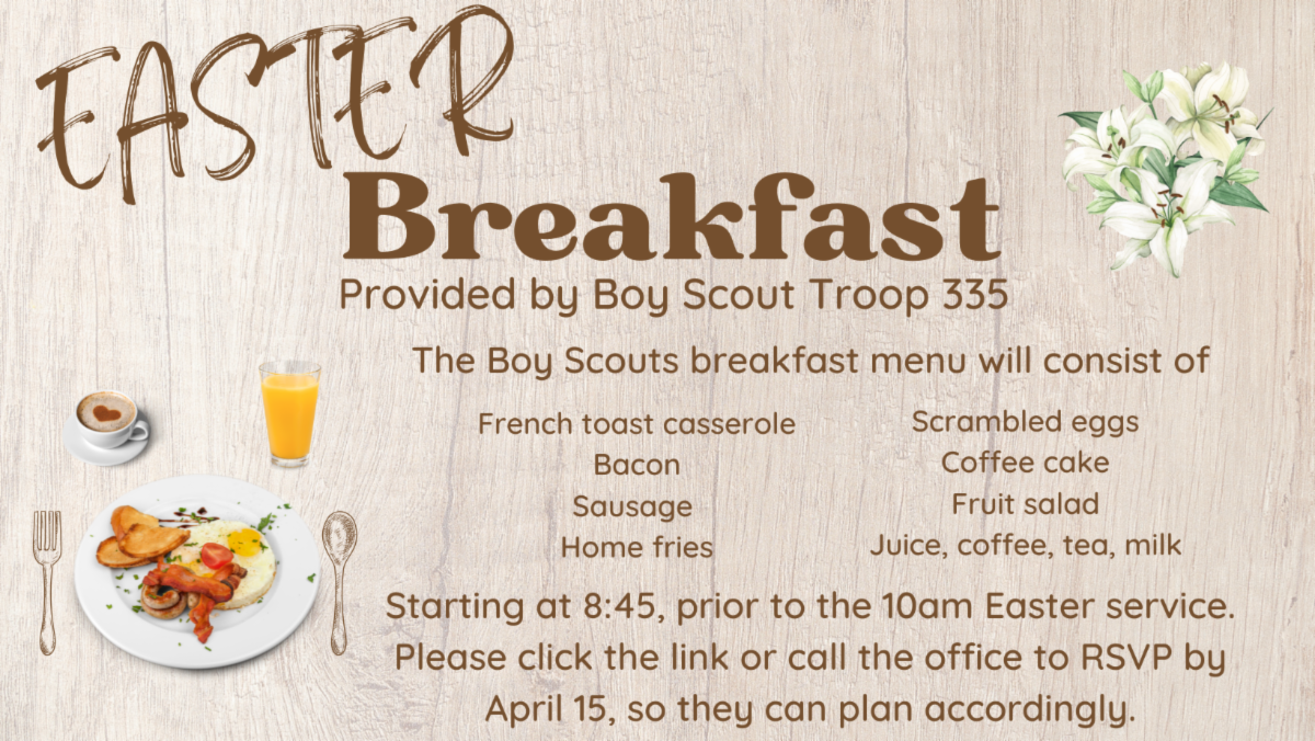 Boy Scout Troop 335 has a long standing tradition at Northmont of preparing and serving a delicious Easter breakfast prior to our Easter Sunday service. We hope you can join us for great food and fellowship on April 20th. Please see below for details and to RSVP.