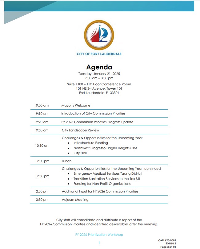 On January 21st, the City held its annual Prioritization Workshop and outlined our District and City-wide goals and priorities for Fiscal Year 2026. As in past years, staff will compile the feedback, group the ideas into categories, and present a draft of the City Commission Priorities for consideration at a February Conference meeting.