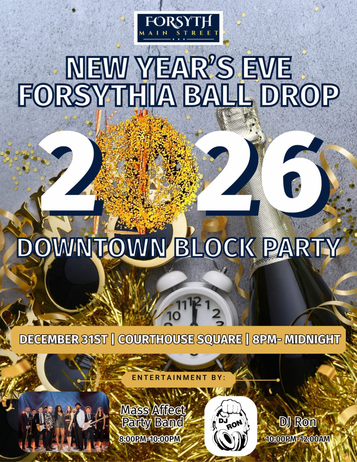 Looking for fun for the whole family on New Year’s Eve? Join Main Street on the historic Courthouse Square, December 31st, 2025 at 8:00 pm, with live entertainment! So, tap your toes, dance, eat, and have lots of fun! Stay for the midnight countdown and Ball Drop too!