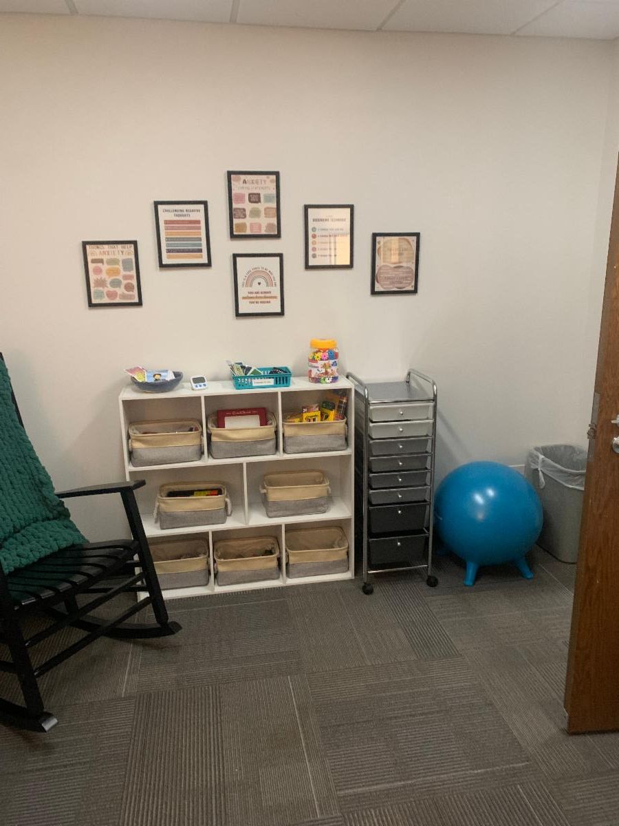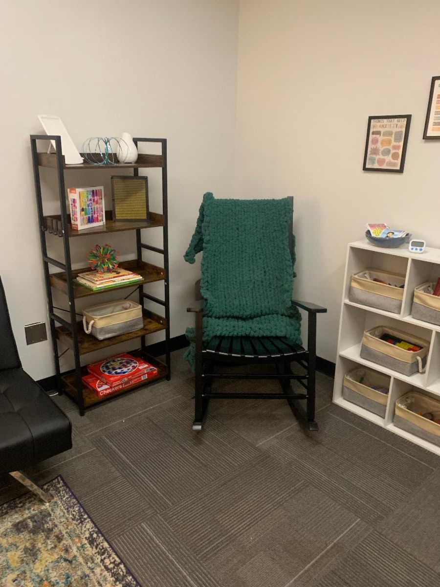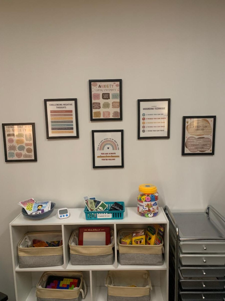 This area is nice for students who suffer with anxiety - a place that is calm and welcoming. There is a sound machine, anxiety games, low calming lighting, stress relief toys, etc. So far the students are using it and saying it is very helpful when they are stressed and have anxiety. This was all possible by the Title IV grant - through Chris O'Brien. It was designed by the Warner Counseling Office: Abby Lorion, Elisa Maher,