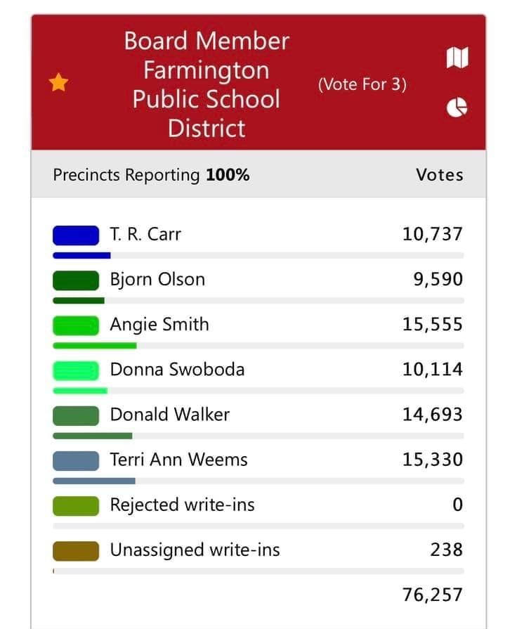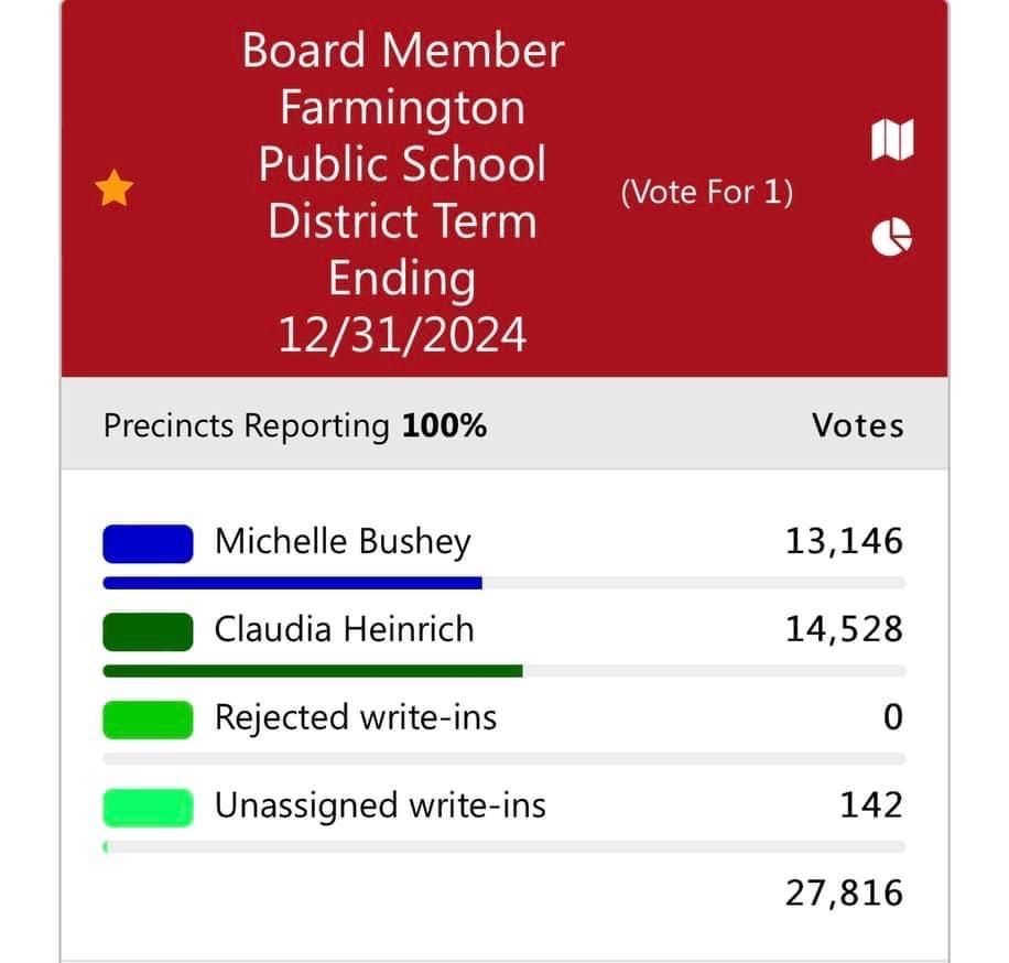 On Tuesday, November 8, four community members were re-elected to serve on the Farmington Public Schools’ Board of Education