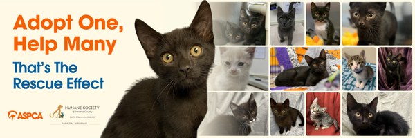 We’re thrilled to announce that the Humane Society of Sonoma County is joining shelters and rescues across the country to participate in the ASPCA’s national Rescue Effect campaign! Now in its second year, this initiative is designed to help place more animals into loving homes and reduce the length of time they spend in shelters.