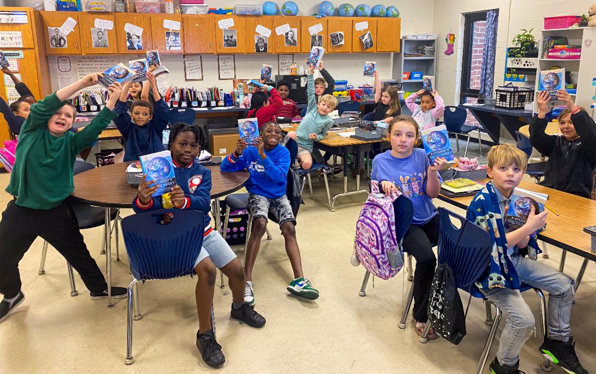 Students in Melissa Phillips' third-grade class at Charles Spencer Elementary School share their excitement about receiving their own 2024-25 Gazetteer Dictionary from the Tifton Woman's Club.