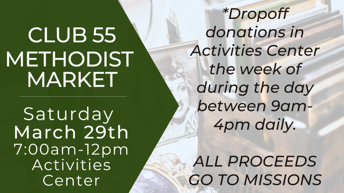 • Club 55 Methodist Market, 7 a.m.-noon, Activities Center, Tifton First Methodist Church, Tifton
