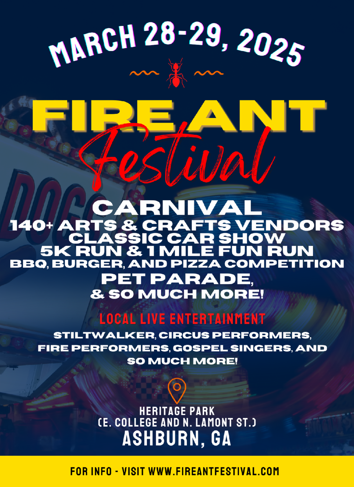 • 29th Annual Fire Ant Festival, 8 a.m.-10 p.m., Heritage Park, W. College Avenue & N. Lamont Street area, Ashburn