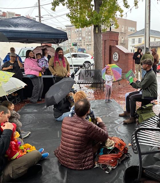 | | | It rained at the Halloween Parade on Piedmont Ave. but still Nathan led a fun Storytime | | |