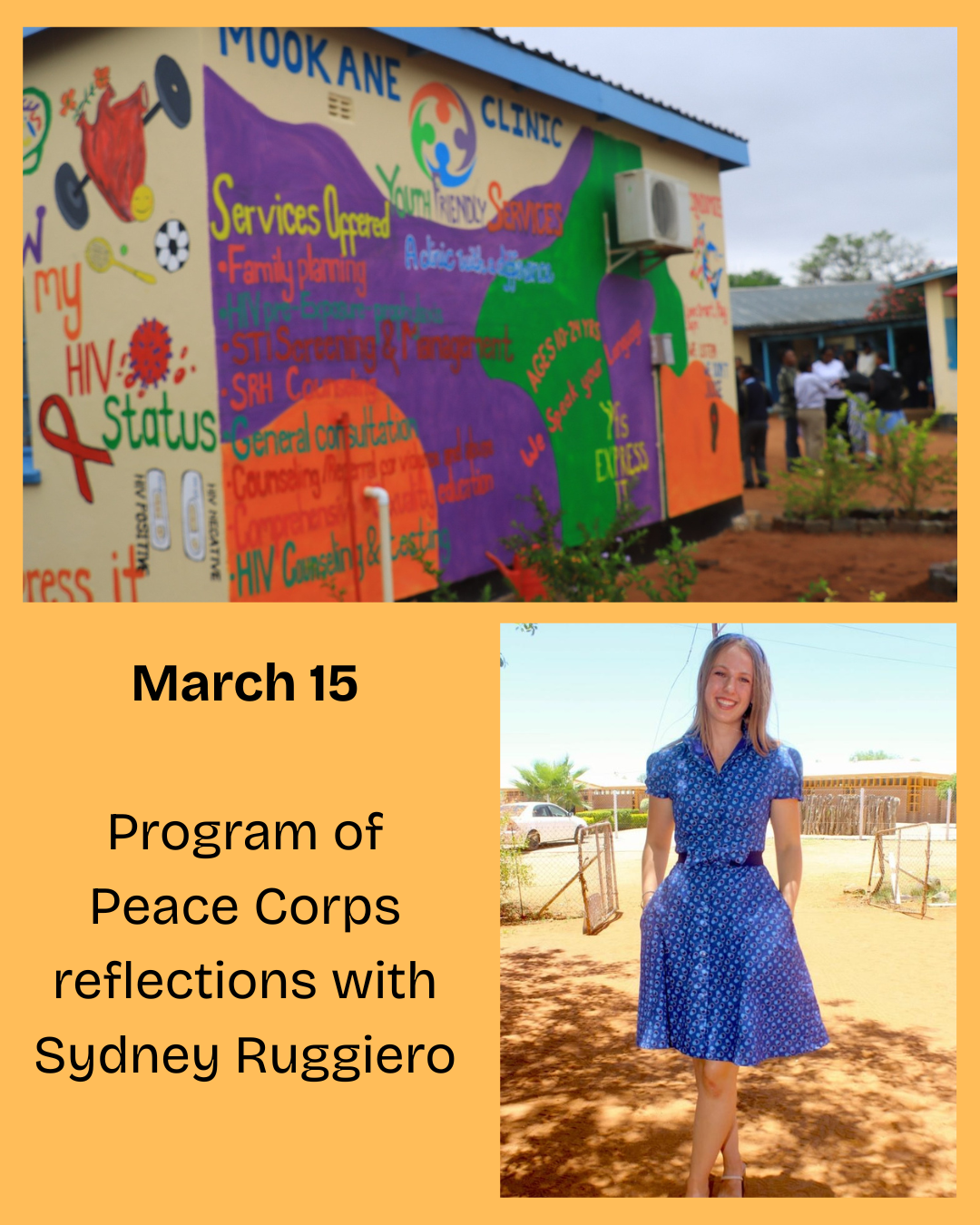 – Following worship, a Program of Peace Corps reflections with Sydney Ruggiero in the Social Room