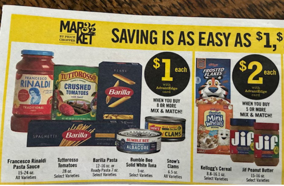 There's another great sale at Price Chopper this week. The Monday and Thursday food support programs at our church would love donations of pasta, pasta sauce, tuna and peanut butter. The sale goes through Saturday.