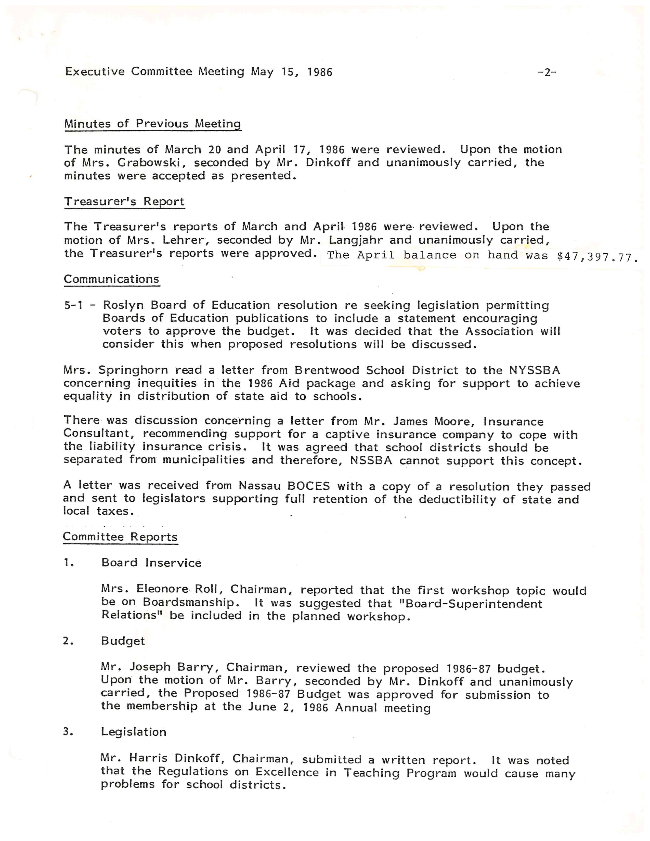 A couple of years ago there was an initiative at the state level to make LIPA a full public power authority as opposed to the hybrid set up that is now in place with LIPA and PSEG. We were concerned about what would happen to the PILOT payments school districts currently receive. I was appointed by the legislature to the LIPA Advisory panel and made sure PILOT payments would be preserved for our schools no matter how this initiative ended up. In addition, a Nassau County school district had a specific concern regarding a LIPA PILOT payment in their district, and we helped to set up a meeting with the chair of the local government services committee in the Assembly to work on their issue.