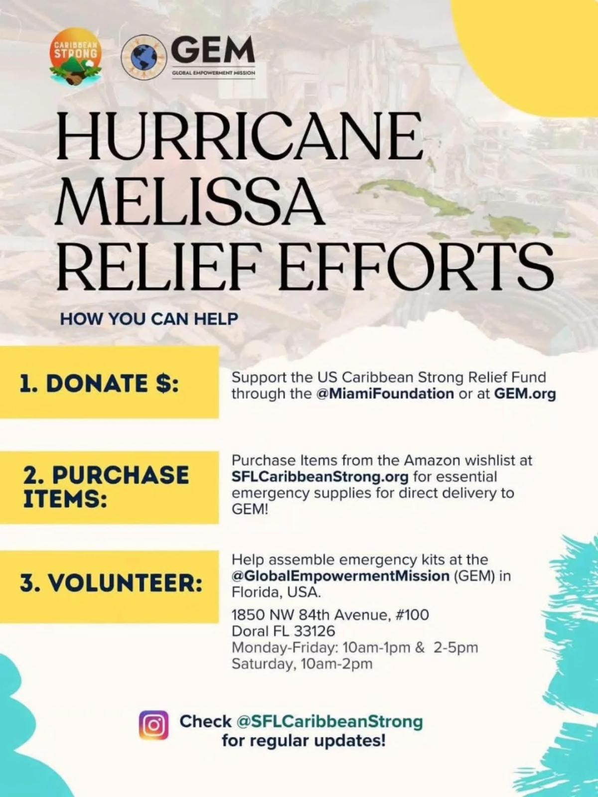 The devastation caused by Hurricane Melissa across the Caribbean has been immense. Affecting Jamaica, the Cayman Islands, Cuba, the Bahamas, Haiti, Dominican Republic and beyond, this powerful storm has left a trail of destruction — flooding communities, damaging infrastructure, and displacing thousands of families. Homes, schools, and businesses have been destroyed, and many communities remain without electricity, food, or clean water. Lives have been lost.