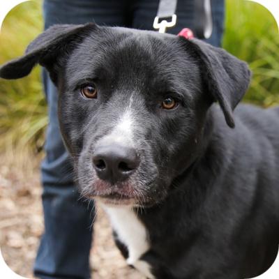 Paddington is big and strong. He could well be crossed with a rottweiler. He still loves to play like a puppy with his human and is loads of fun, but will need an adult home. He doesn't understand the rules with children. He is happy to meet other dogs but will likely need to be an only dog at home. He is searching for a human who has training experience and a no cat household.
