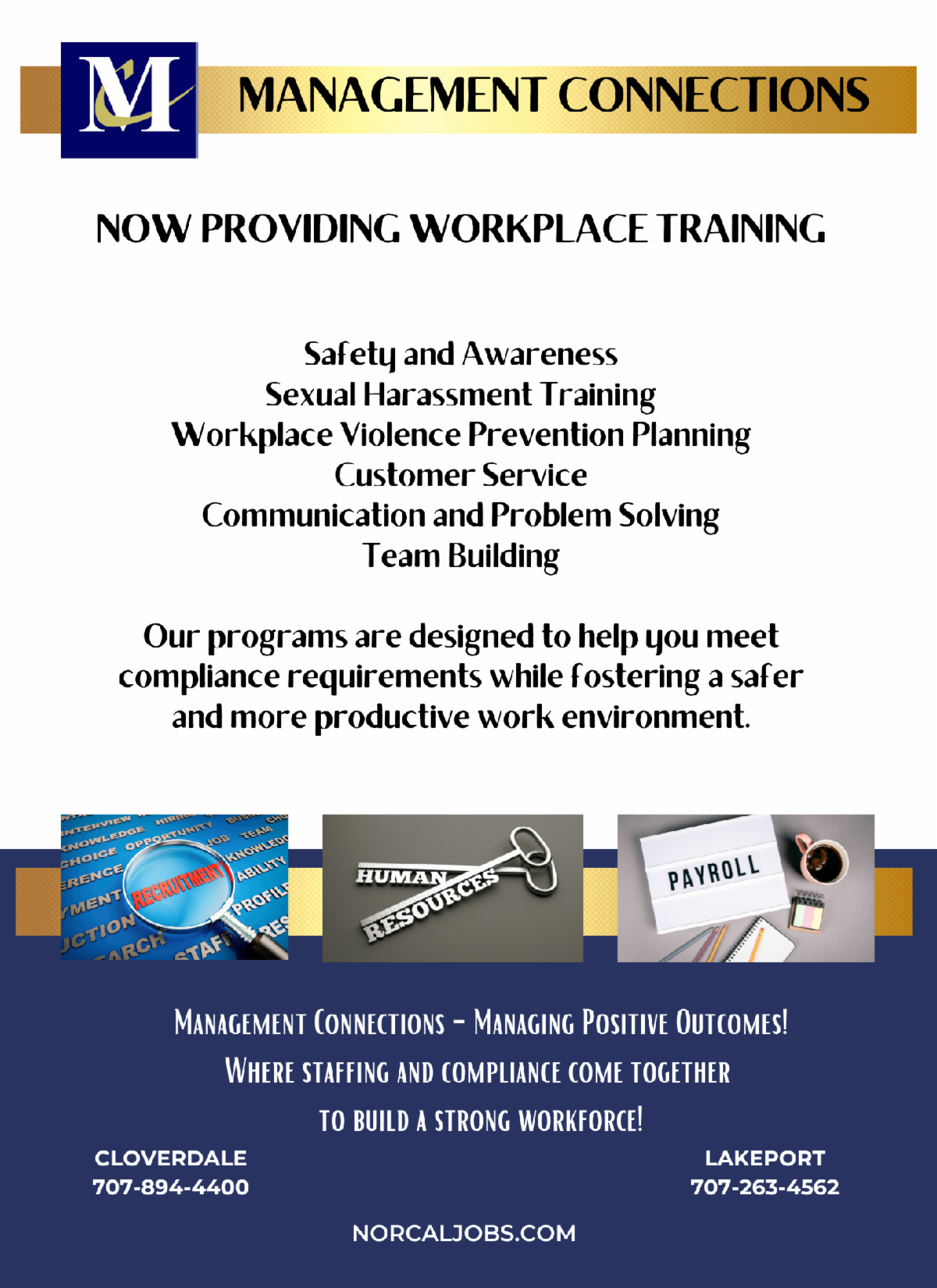 Articles under the masthead of the CalChamber published in our weekly Enews are pulled from news releases from the California Chamber of Commerce. They are informational articles for the benefit of our membership on legislative issues that may impact the Lake County business community. We welcome and encourage input from our members on these topics. If the Chamber Board of Directors acts to take a position on any topic, an article will be written which clearly identifies the position of the Lake County Board of Directors on that topic. |