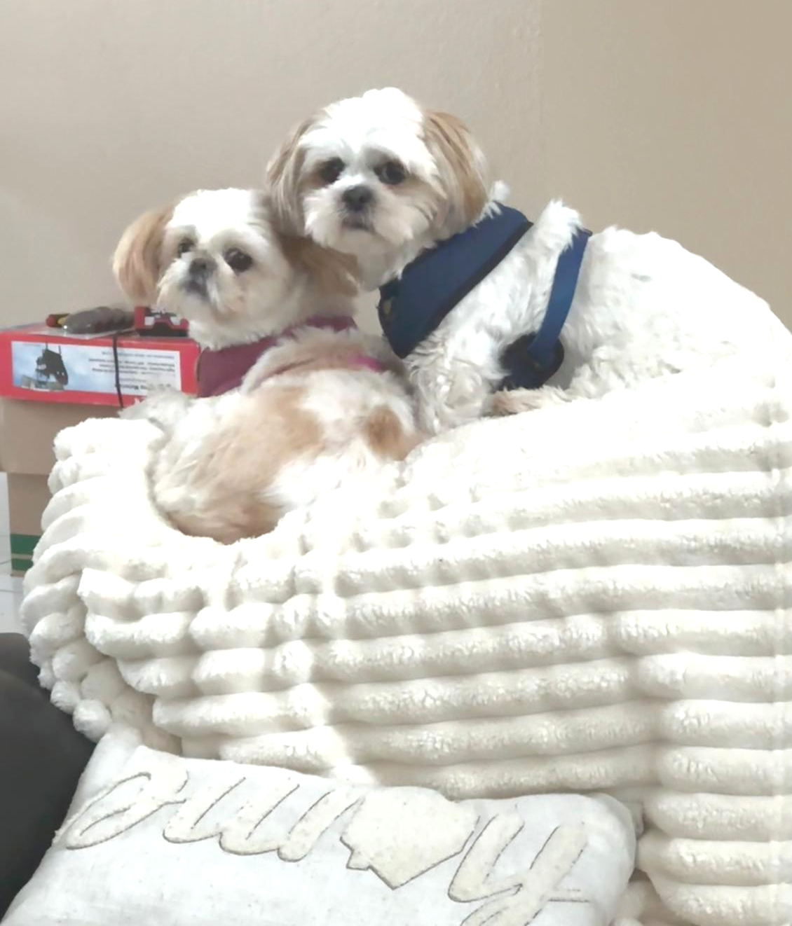 Sunny & Sally: Sunny is Sally's mom and they are a loving bonded pair. They are both small Shih Tzu girls. Sunny is mostly white, about 4 years old and 13 pounds. Sally is mostly black, about 10 months old and 9 pounds. Both girls are super friendly, cuddly and playful. They need to be adopted together;