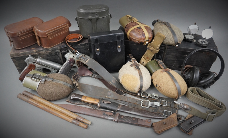 NEW! Step into history with 1944 Militaria's latest collection featuring an array of Original German WWII Combat Equipment, including Leather Y-Straps, Panzer Headphones, Wartime Flare Pistols, Unissued Mess Kits, and more. Dive into the past with items like Matching K98 Bayonets, Web/Tropical K98 Bayonet Frogs, Unissued Flight or Kradschützen Goggles, and even unique pieces like the Hitler Jugend Medical Pouch and Field Medics Pouches. Don't miss the chance to own a piece of history with the Original Third Reich Era Olympia Typewriter complete with an SS key in a case. Explore our selection and bring home a piece of WWII authenticity today!