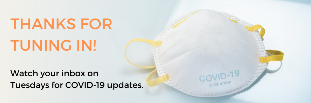 Thank you for continuing to tune in to our weekly COVID-19 updates. As many programs have been set in place, we will be shifting our COVID-19 updates to be integrated in our regular weekly newsletter which will continue to appear in your inbox every Tuesday morning.