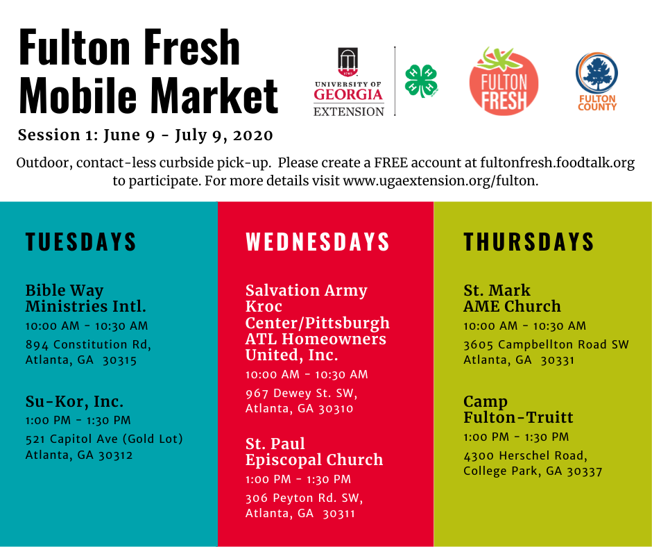 020. The Fulton Fresh Mobile Market was created to educate residents living in communities designated as food deserts on the importance of fresh and in-season produce. This season, participants will take part in online nutrition education module and curbside pick-up instead of in-person activities.