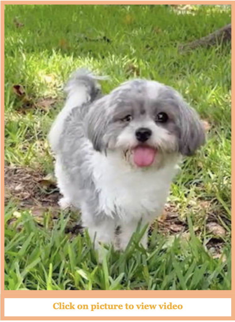 Claire is a small female, about 3 years of age and 10 lbs. Her right eye is very small and non-visual , our ophthalmologist thinks is probably congenital. Her left eye is healthy and she has good vision. From my personal experience, Shih Tzu's do adapt well to having vision in one eye only. It certainly is not slowing this little girl down as you can see when you watch her video on our website; you can also view her video by clicking on her picture. Claire is looking forward to sharing her adorable personality with the right forever family.