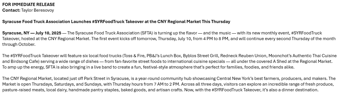 The Onondaga Agriculture Council will hold the 9th annual ON Farm Fest on September 20th, 2025. Visitors will enjoy a free day of family-friendly fun as local farms across Onondaga County opened for tours from 10am-3pm. At ON Farm Fest, you’ll learn about life on the farm and discover the latest advances in agriculture. Many farms have local products and food for sale, live music, and interactive exhibits.