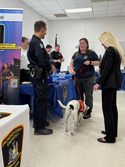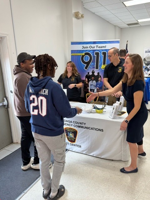 On October 23rd, Onondaga County Department of Emergency Communications/911 hosted an Emergency Services Career Fair at the Nedrow Fire Department. This recruiting event brought together members of the 911 Center as well as agencies from law enforcement, fire and Emergency Medical Services (EMS). Representatives from various branches of the military, Onondaga County Probation, local alarm companies, security companies, campus safety from local colleges, hospital security and private investigators were also in attendance.