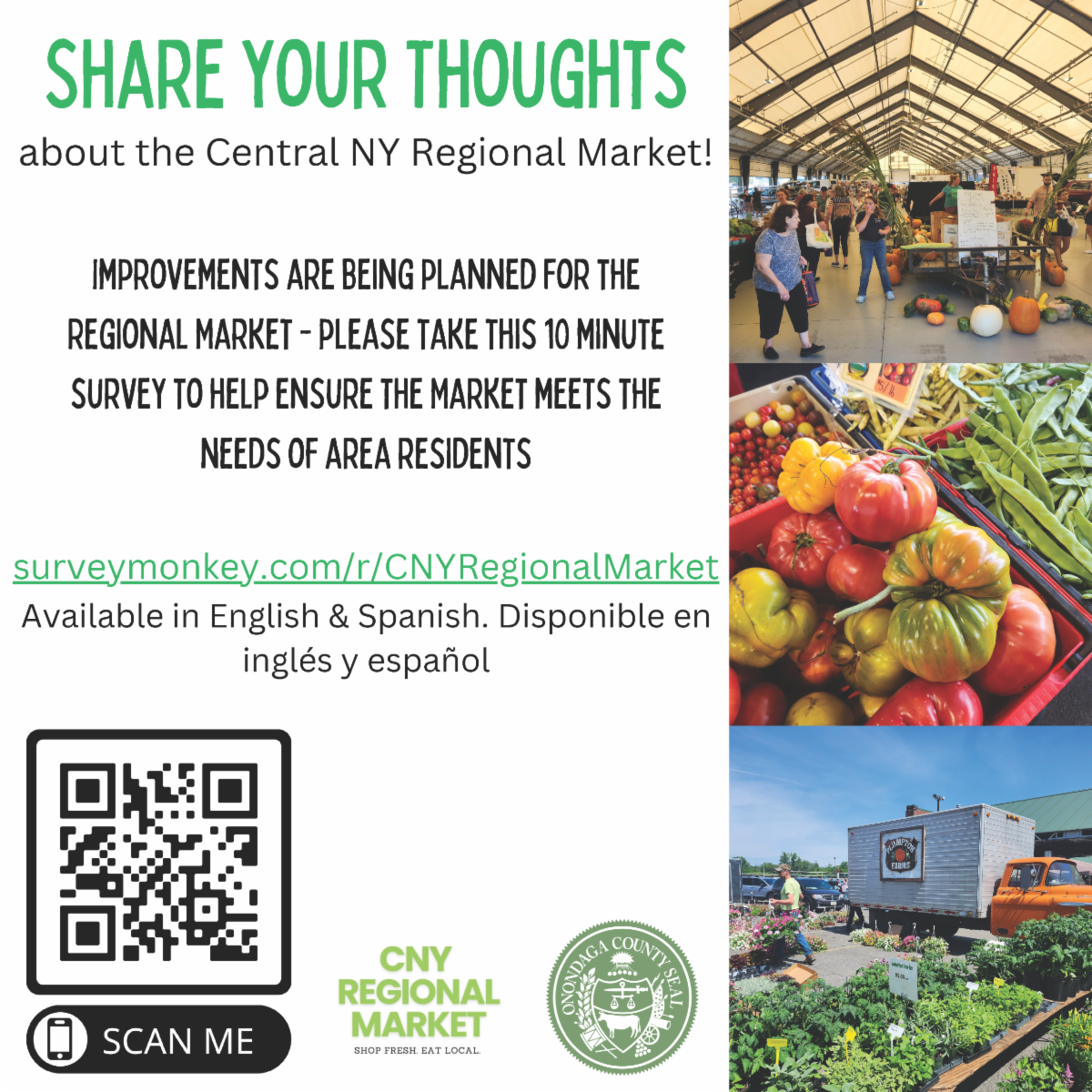County Executive McMahon announced the launch of an online survey seeking public input on the future of the Central New York Regional Market. With major investments under consideration, residents throughout Central New York are being asked to share their ideas for improving the historic Market on Park Avenue. The survey asks residents things such as their experiences at the Market, reasons why they do or do not shop there, what they like and dislike about the Market and their ideas for improvements.