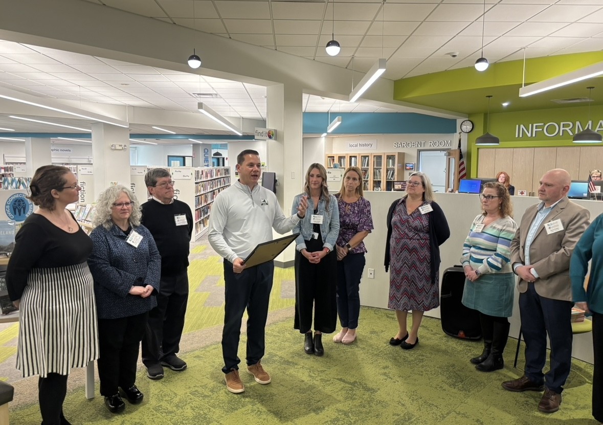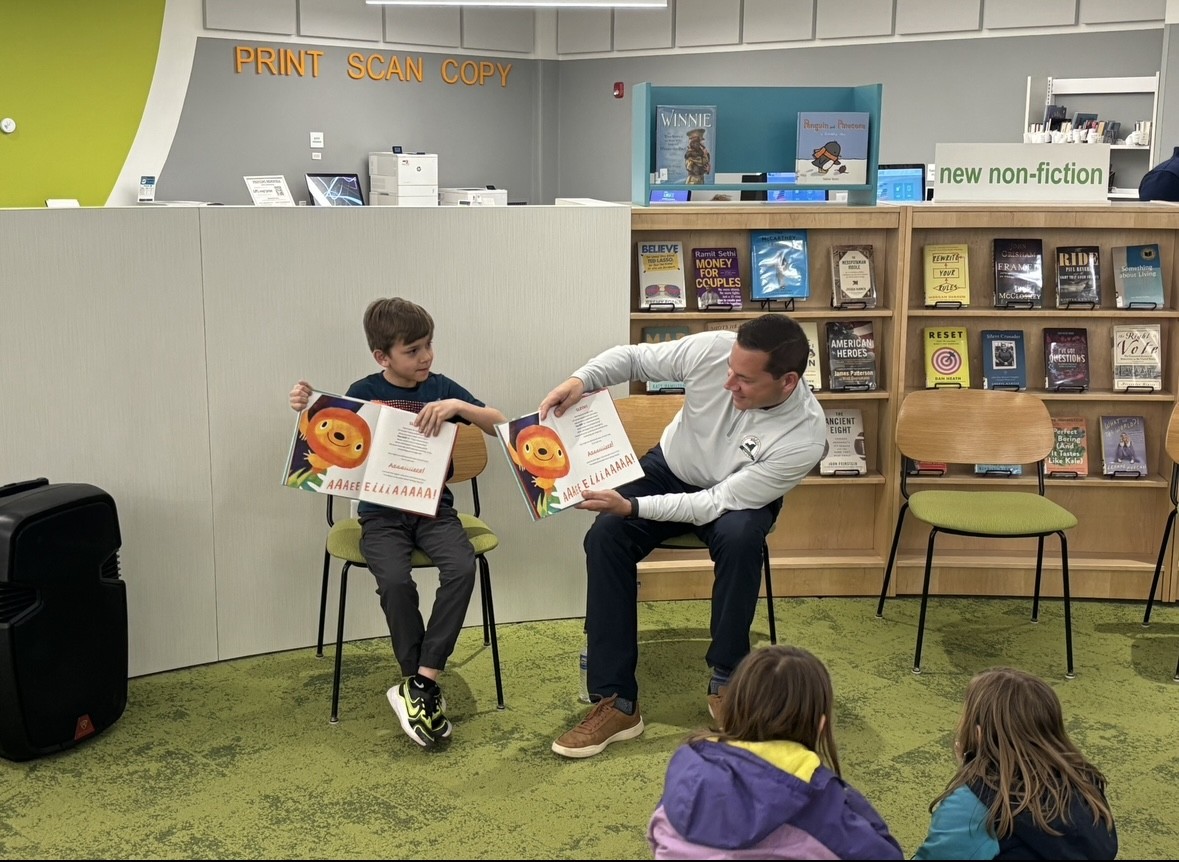 | | County Executive McMahon visited Liverpool Public Library to present Onondaga County Public Libraries (OCPL) Executive Director Amanda Perrine and members of the Libraries Team with a proclamation in honor of National Libraries Week. While there, he also had the pleasure of reading to a group of local kids in celebration of this important week. | |