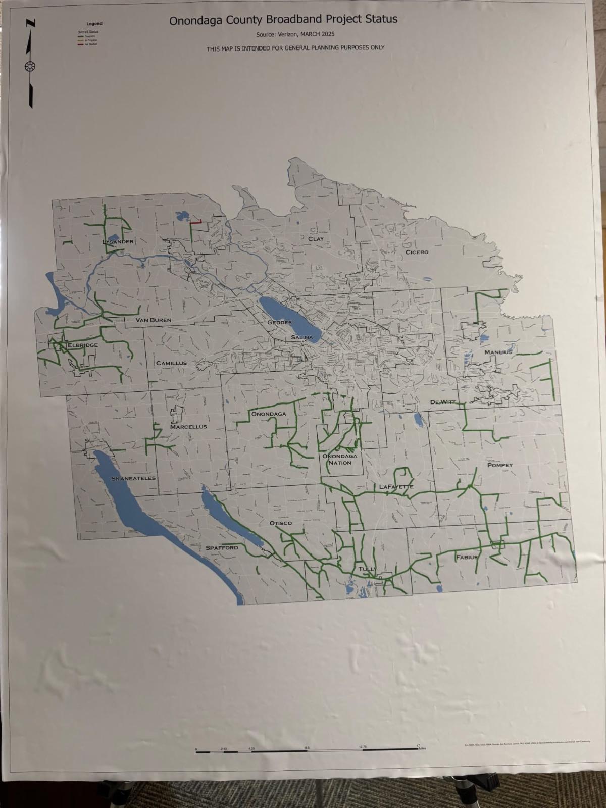 Prior to 2022, rural areas within the Towns and Villages of Onondaga County were unable to be serviced broadband connectivity. By 2023, the County and Verizon began working diligently to ensure every eligible resident has access to broadband services. Over the course of the Broadband Project, about 351 miles of fiber has been run and 1,497 unserved addresses now have FIOS available.