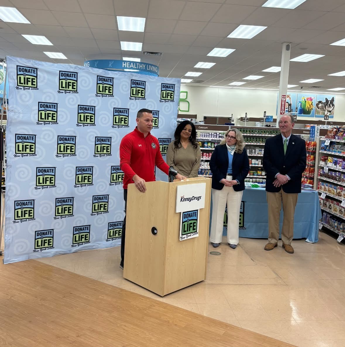 County Executive McMahon joined Kinney Drugs, Donate Life New York State, Assemblyman John Lemondes, New York State Department of Motor Vehicles and a local heart transplant recipient to announce a new initiative that will focus on increasing education and registration for tissue donations. New York State recently surpassed the 50% mark for registered organ donors and Onondaga County is at nearly 68% but there is still a need for increased awareness and registration.