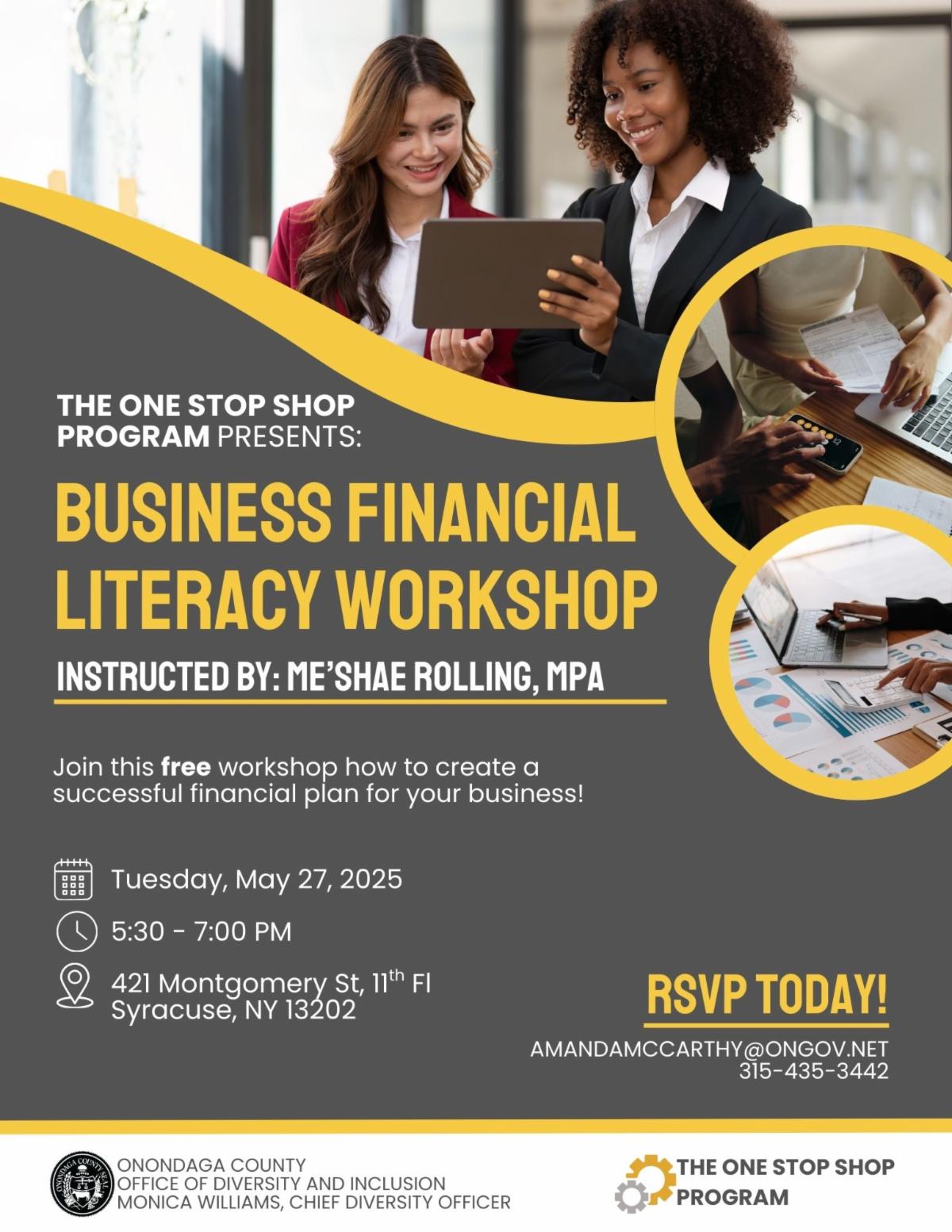 The Onondaga County Office of Diversity and Inclusion hosted three workshops as part of their One Stop Shop Initiative. The workshops focused on Introduction to Lead Initiatives, Financial Literacy 2 and Introduction to Grants.