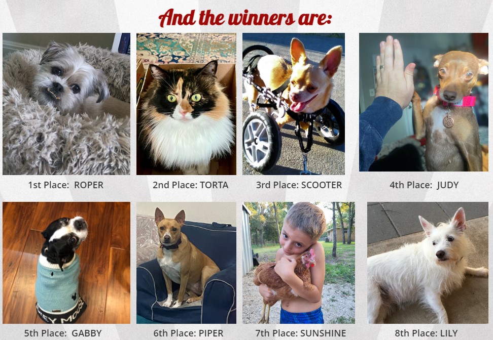 Samuel L, Bonnie F, Andrea S, Nancy L, Adam B, Ramona J, Susan L, Daniel H, Andy M, Lauren S, Amazon Smile, Facebook, Bark Box, Jeri M, Janis G, Tia M, Diane B, Jennifer K, Jaclyn H, Jean M, Janice M, Debra B, Kim L, Mike B, Tammy S, Jaymi E, Andrew B, Erika H, Marilyn B, Kirsten C, Kay R, Tamara W, Tina P, Jill R, and all those who voted in the Cutest Critter Photo Contest