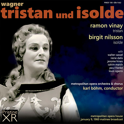 For those who think Böhm's more celebrated live recording from Bayreuth in 1966 is too fast, this performance from the Met six years earlier will come as a shock: excluding Milton Cross's radio announcements it is a mere three hours and seventeen minutes, compared with just under three and a half hours in 1966 and about 3:20 at Bayreuth, with the same two principals, in 1962. The latter certainly benefits from somewhat more relaxed speeds, as the review by my MusicWeb colleague Paul Godfrey points out but for some the febrile excitement of Böhm's attack on the score will carry its own thrill. To be fair, the love music of Act II does not sound too rushed, climaxes are skilfully paced and weighted, and key orchestra passages such as the one in Act I following "Herr Tristan trete nah" are beautifully judged, but for those who prefer a more temperate approach the 1962 Bayreuth performance will suit. Unfortunately, as with the Met relay here, the audience there is maddeningly bronchial; the 1966 recording is composite so the engineers were able to edit out the worst intrusions and select the best passages from both performances and rehearsals; here in 1960, you get what you get, as it was broadcast, persistent hacking and all. The coughing through the cor anglais solos opening Act II is especially irritating and the Met orchestra is perhaps lacking a tad in weight and "grunt" compared with its Bayreuth counterpart but it is still very fine. However, there are distinct advantages to this recording, not least the usual superb Pristine XR remastering which enormously improves upon the original tapes and provides a realistic, unobtrusive Ambient Stereo effect. The sound is well balanced although a little brittle and peaky on higher, louder notes; nonetheless it is miraculous for its age and provenance. Furthermore, for those who like me admire Windgassen's artistry but find his tone rather whining, we hear a more virile, heroic Tristan from Ramon Vinay, still at his peak two years before he reverted to baritone roles. Finally, the thrill of Birgit Nilsson's debut as Isolde is captured in full; her actual debut which created a front-page sensation was three weeks earlier but she was partnered by a lesser tenor than either Vinay or Windgassen in Karl Liebl, subbing for an indisposed Vinay, so this is a more desirable memento of her Isolde in her youthful prime. Nilsson herself is of course phenomenal, the top C's effortless, the narratives full of bite and the concluding "Mild und leise" transcendent. Of course she also made a studio recording under Solti later that same year but while Fritz Uhl is serviceable and musical, there is something of the same imbalance between the lovers' voices which mars Nilsson's live performances with Windgassen. By all accounts, she preferred him above all as her Tristan but my preference remains for Vinay, whose baritonal heft and agonised delivery of the text rival Melchior and Vickers for animal passion. He was the pre-eminent Tristan for whole of the 1950's, taking over from Melchior, Lorenz, and Svanholm and his powerful voice matches Nilsson's in amplitude, whereas other tenors tend to be swamped by her laser-like intensity. The erotic intensity generated in the extended Act II love duet is electric and hardly compromised by Böhm pressing on the tempo. The supporting cast has no weaknesses but few are as good as the 1966 Bayreuth recording. Irene Dalis' Brangäne is vocally not as beguiling as Christa Ludwig's - there are some slides and glottal mannerisms, and her rich tone can be a little "clotted" but the sound is voluminous, she has a splendid lower register and can keep up with Nilsson in their exchanges. Walter Cassel as Kurwenal cannot match Waechter or Hotter in his prime; he is rather blustery in Act I but smoother in Act III, even if again he occasionally barks a bit. Charles Anthony makes a lovely Sailor, better than Georg Paskuda in 1962 or Peter Schreier in 1966 and Jerome Hines delivers a big, warm stream of sonorous bass tone. His nobility and steadiness are admirable but his characterisation is rather generalised compared with the superb Martti Talvela, whose anguish is more touchingly palapable. To sum up, this remains a highly desirable memento of a great occasion, compromised by audience coughing but greatly enhanced by Pristine's splendid remastering.