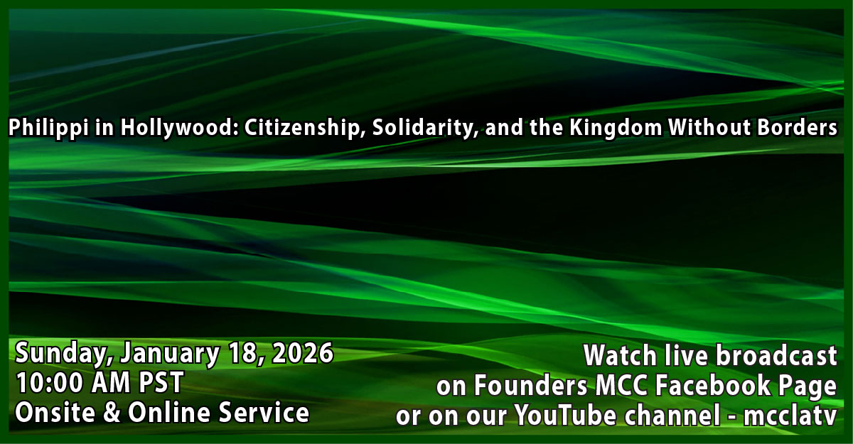 With the ICE, Homeland Security, and Border Patrol raids occurring so frequently here in Los Angeles, we at FMCC/ICMF realize the fear that many of our congregants have in leaving their homes. We are initializing an immediate ministry called, ANGELS. This ministry is for those who may be fearful of going to the grocery store, the pharmacy, and the department store and need to reach out to an ANGEL for help. It is also for people who may be willing to run these errands (for those too fearful to leave home currently) to let us know you're willing to BE an ANGEL. So, if you need an ANGEL, or if you're willing to be an ANGEL, please contact us at care@mccla.org and we'll match you up if at all possible.