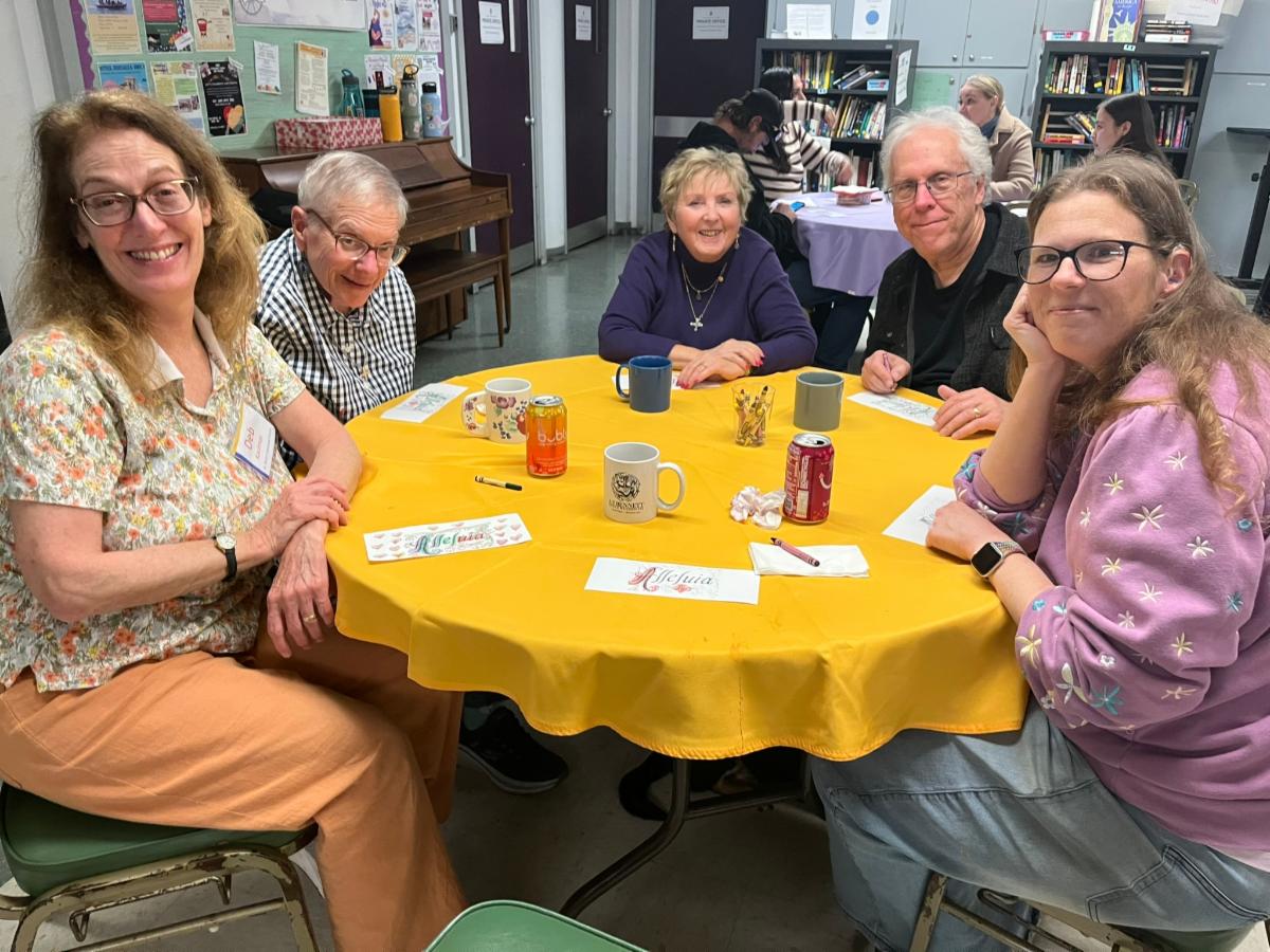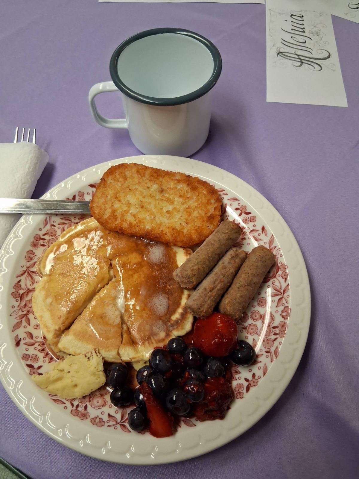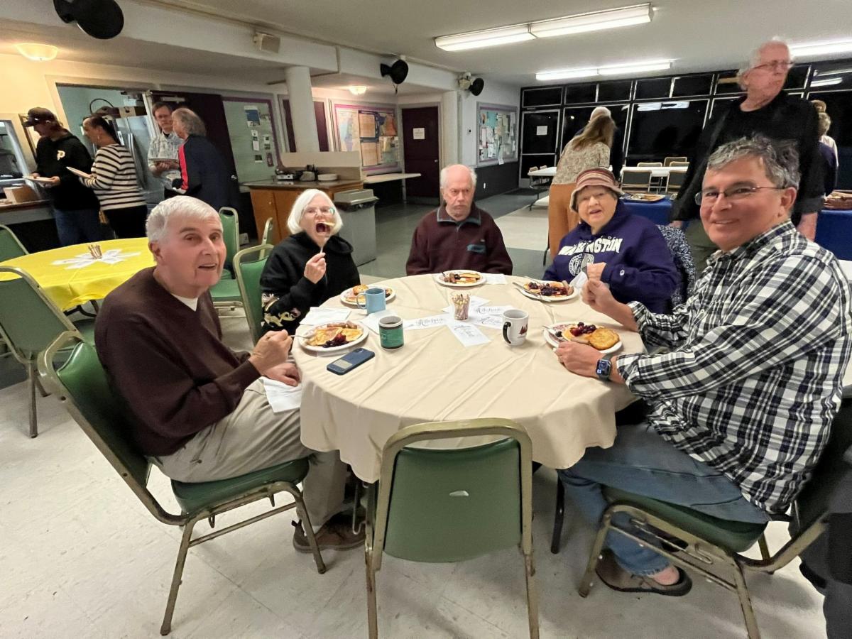 To celebrate Shrove Tuesday, St. Bede’s parishioners and guests gathered to enjoy a feast of pancakes (both vegan and traditional) prepared by chefs Jennifer and Jerry. The serving table was filled with butter, syrup, mixed berries, vegan and turkey sausages, and potato patties. Everyone indulged in the delicious meal, knowing Lent would start the following day. Dinner tables were decorated with crayons and papers containing the word "Alleluia" (the "A” word) which means Praise the Lord. Diners were encouraged to color the word and write something they wished to let go of by the end of Lent on the back of the paper. These papers were collected into a box, symbolically referred to as a "coffin."